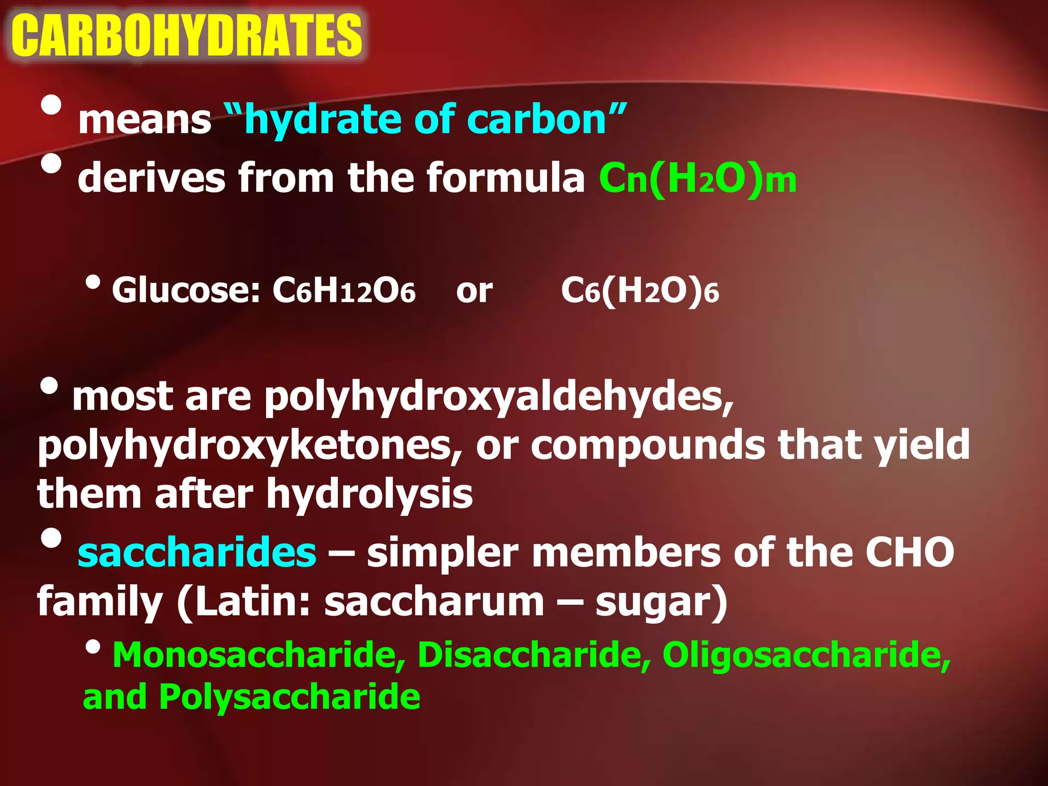 CARBOHYDRATES LECTURE01 Carbohydrates polyhydroxyaldehydes or ...