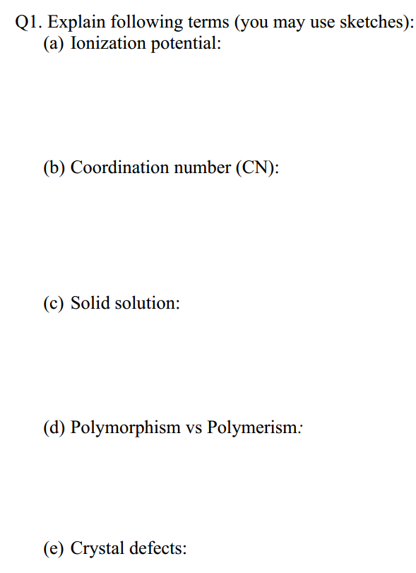 Solved Q1. Explain following terms (you may use sketches): | Chegg.com