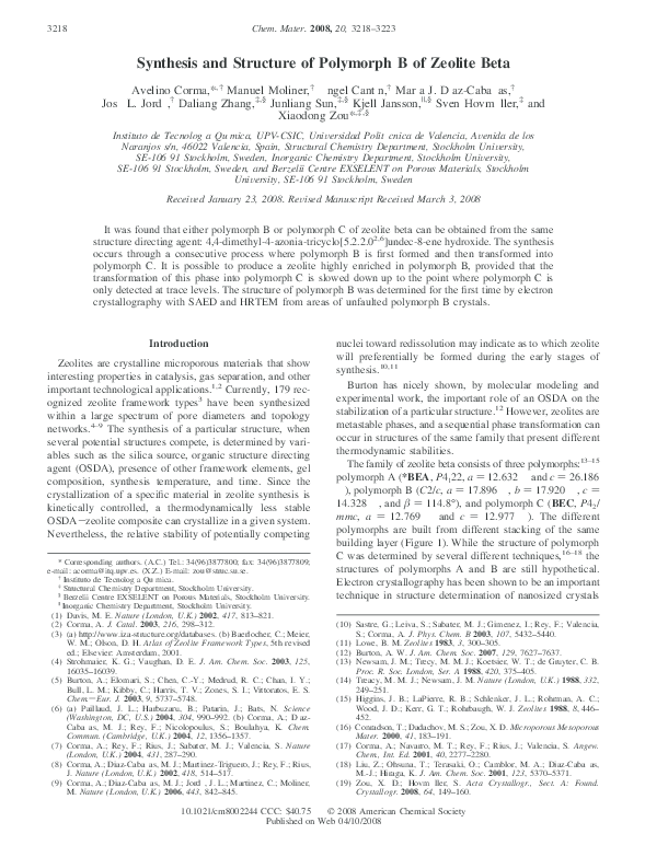 (PDF) Synthesis and structure of polymorph B of Beta zeolite