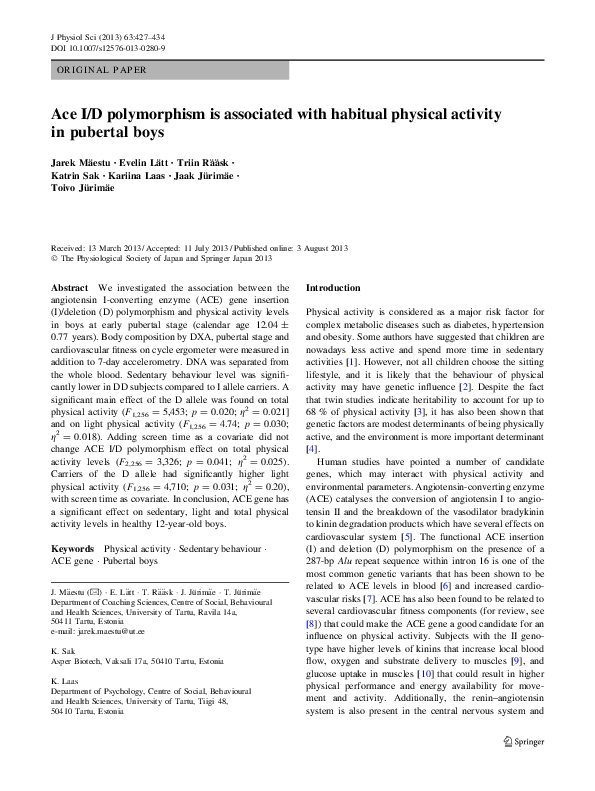 (PDF) Ace I/D polymorphism is associated with habitual physical ...