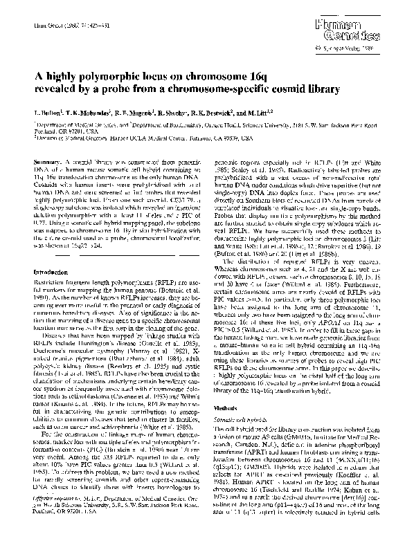 (PDF) A highly polymorphic locus on chromosome 16q revealed by a probe ...