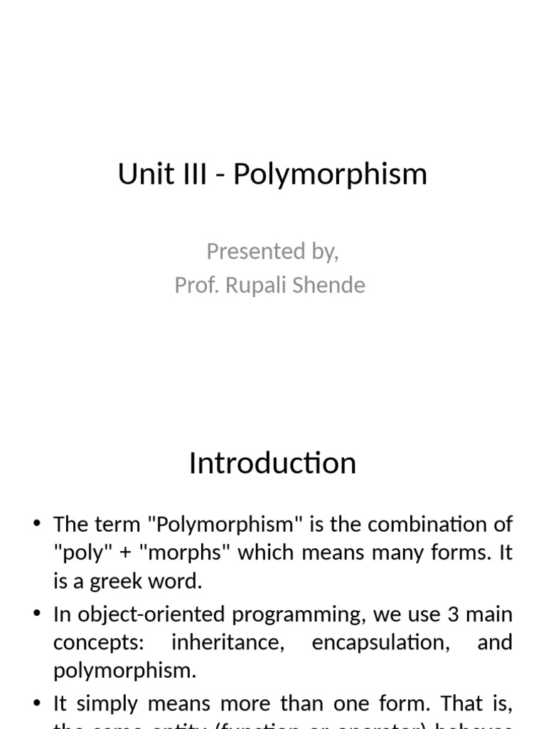 OOP - Unit 3 (Polymorphism) | PDF | Method (Computer Programming ...