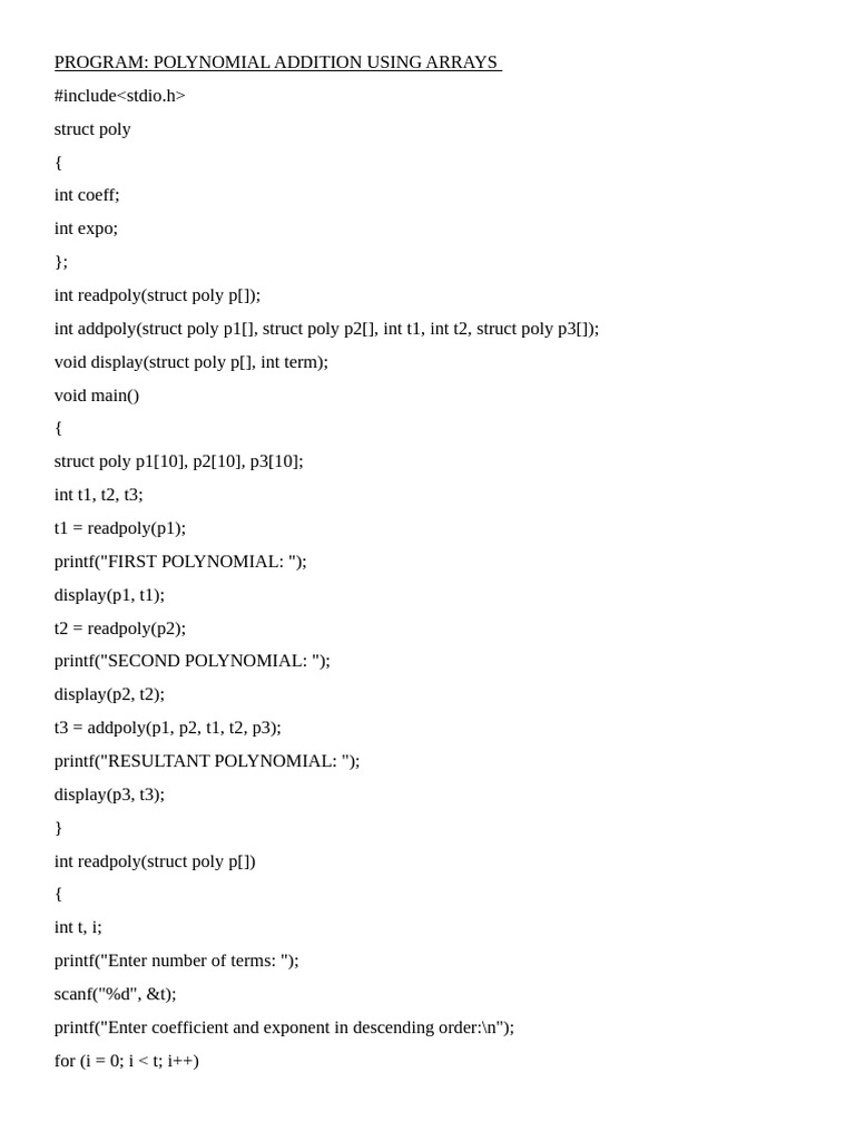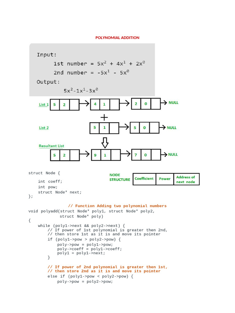 Polynomial Addition | PDF