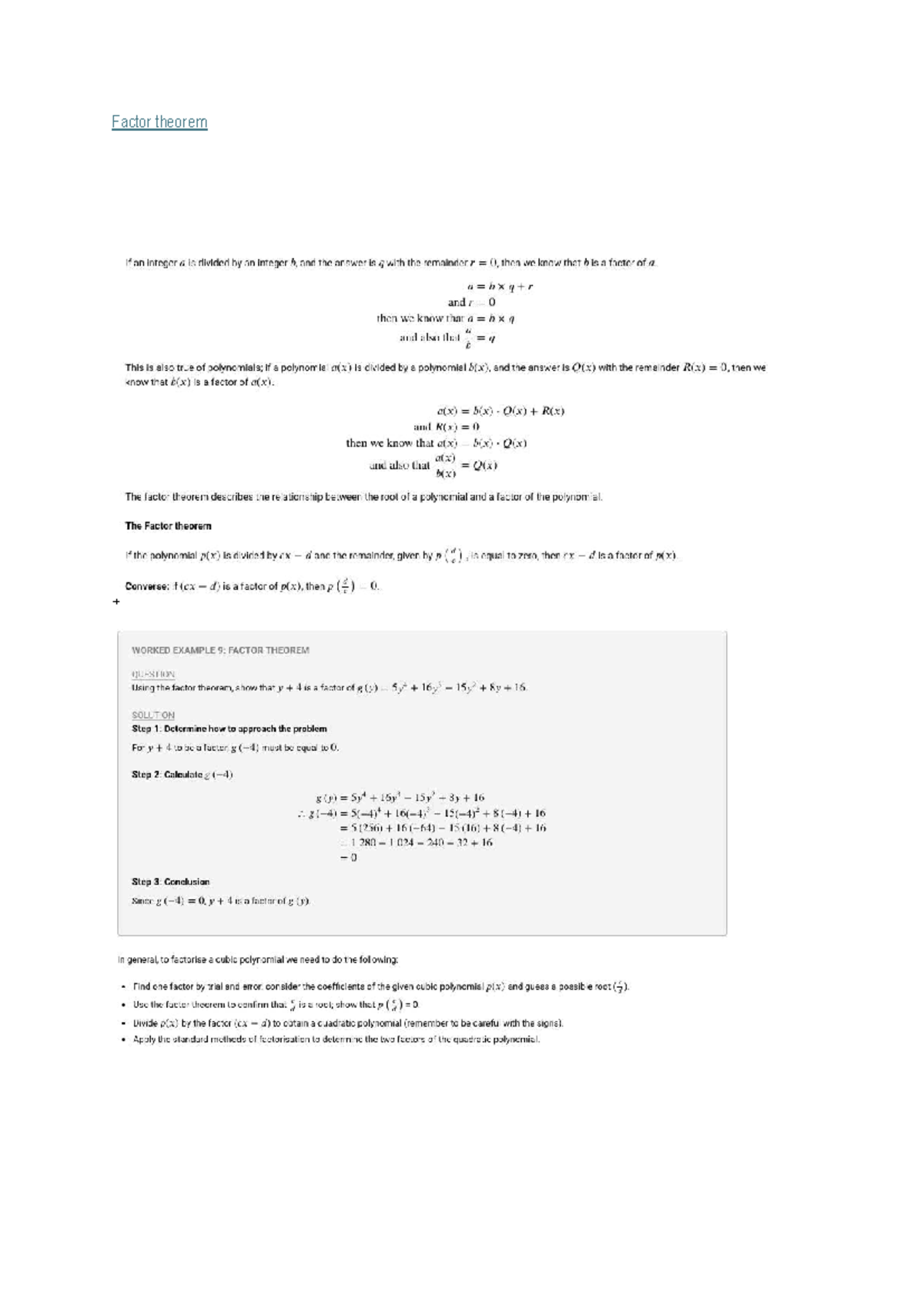 Factor Theorem - MATH101 Final Exam Notes - Studocu