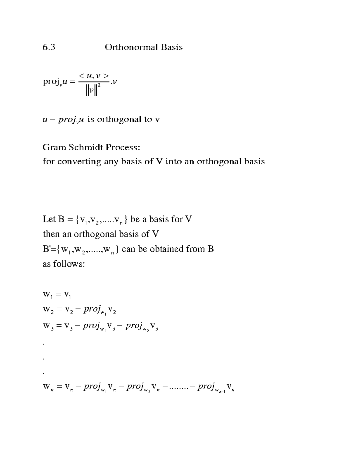 6.3 Summary: Orthonormal Basis & Gram-Schmidt Process Notes - Studocu