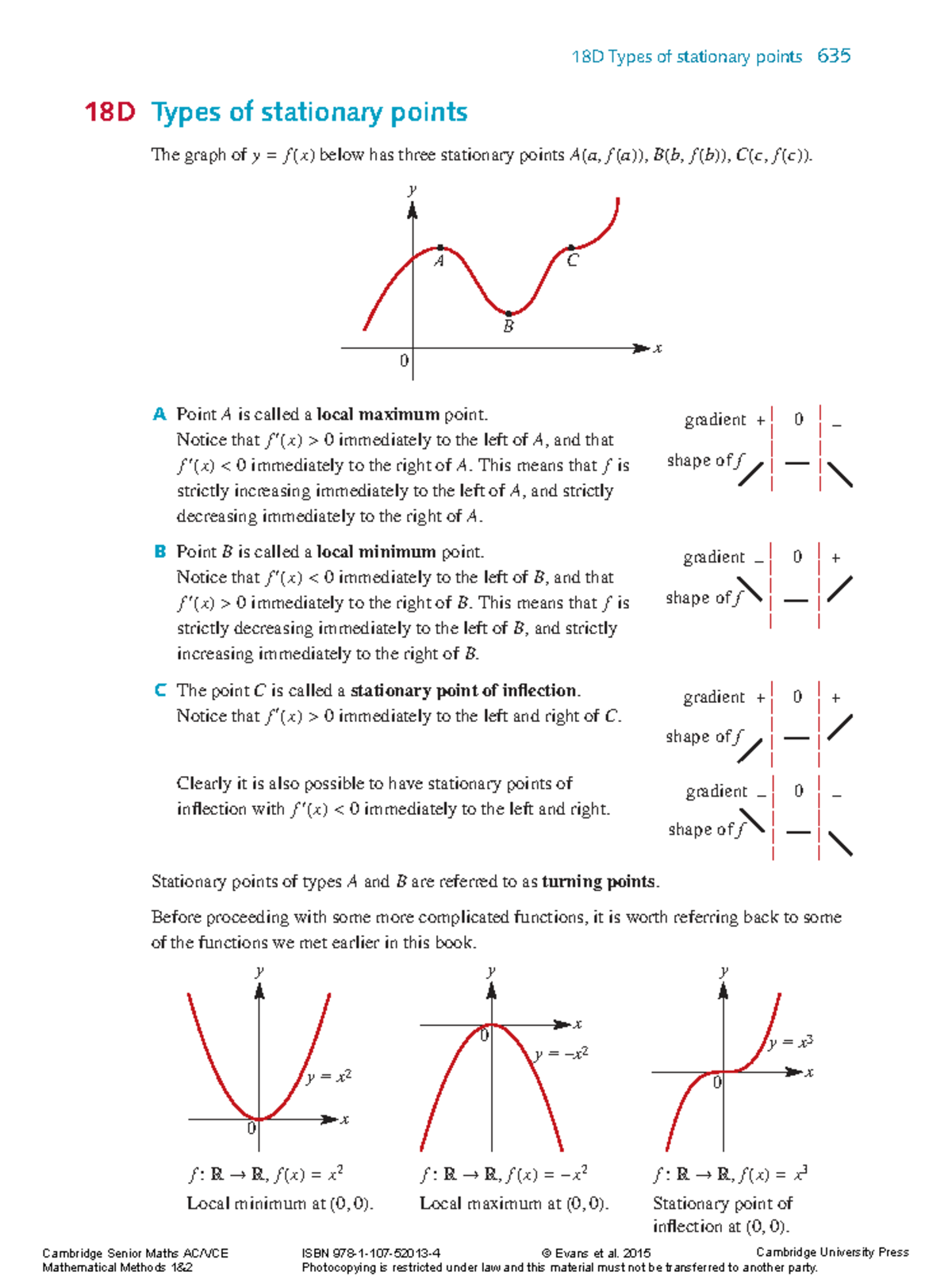 Cambridge Senior Maths Exercise 18D: Types of Stationary Points - Studocu