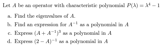 Solved Let A be an operator with characteristic polynomial | Chegg.com