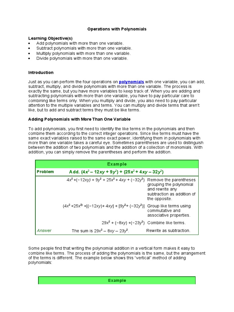 A Comprehensive Guide to Polynomial Operations Including Addition ...