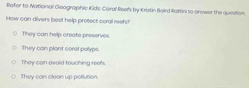 Solved: Refer to National Geographic Kids: Coral Reefs by Kristin Baird ...