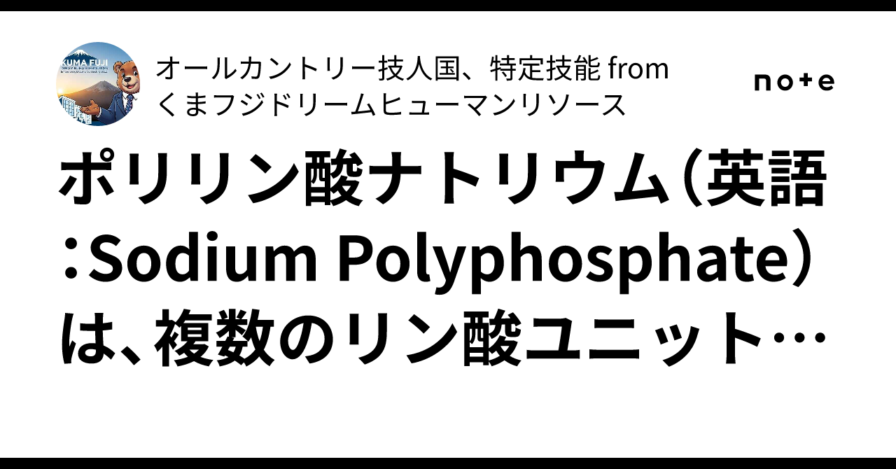 ポリリン酸ナトリウム(英語:Sodium Polyphosphate)は、複数のリン酸ユニットが鎖状に結合した構造を持つ重合リン酸のナトリウム ...