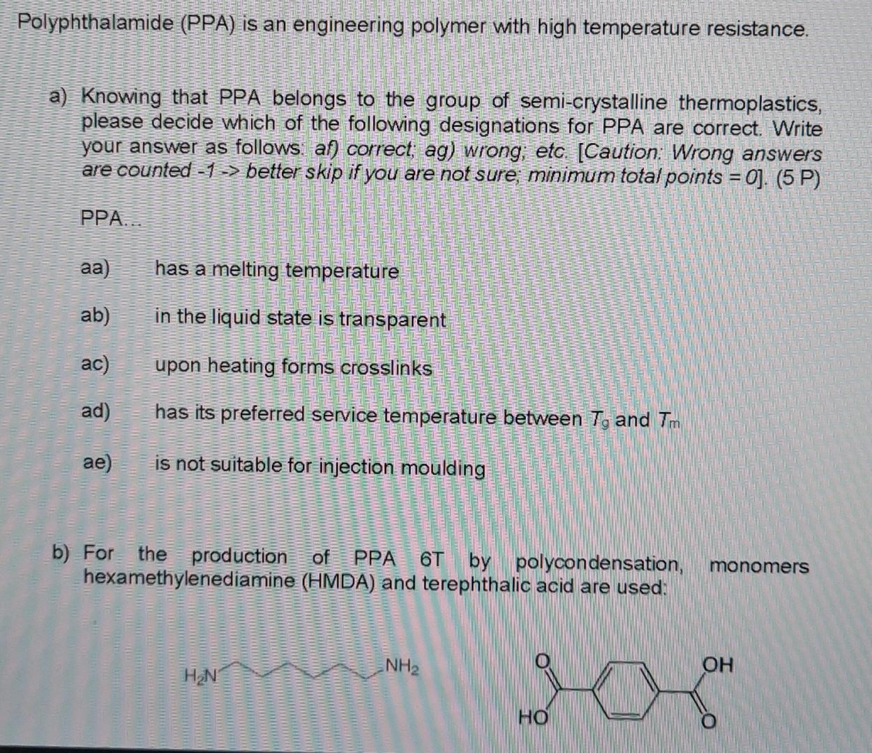 Solved Polyphthalamide (PPA) is an engineering polymer with | Chegg.com