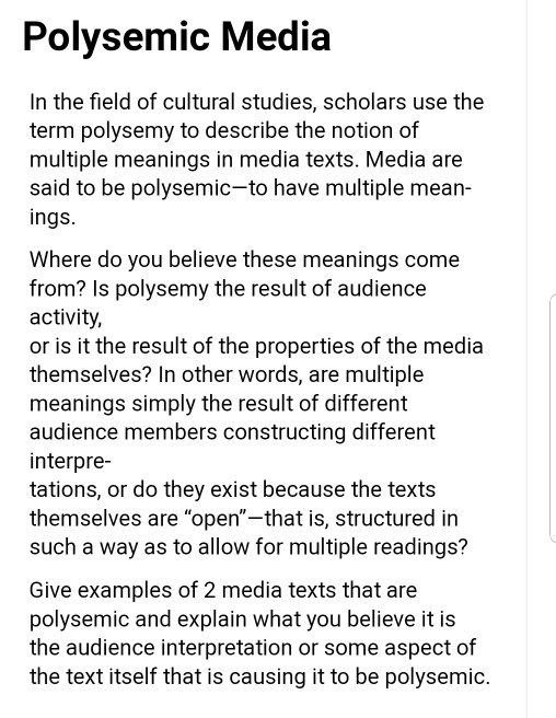 Polysemic Media In the field of cultural studies, | Chegg.com