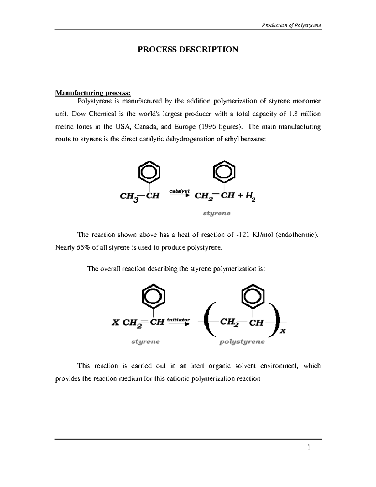 Polystyrene Methods-Production - PROCESS DESCRIPTION Manufacturing ...