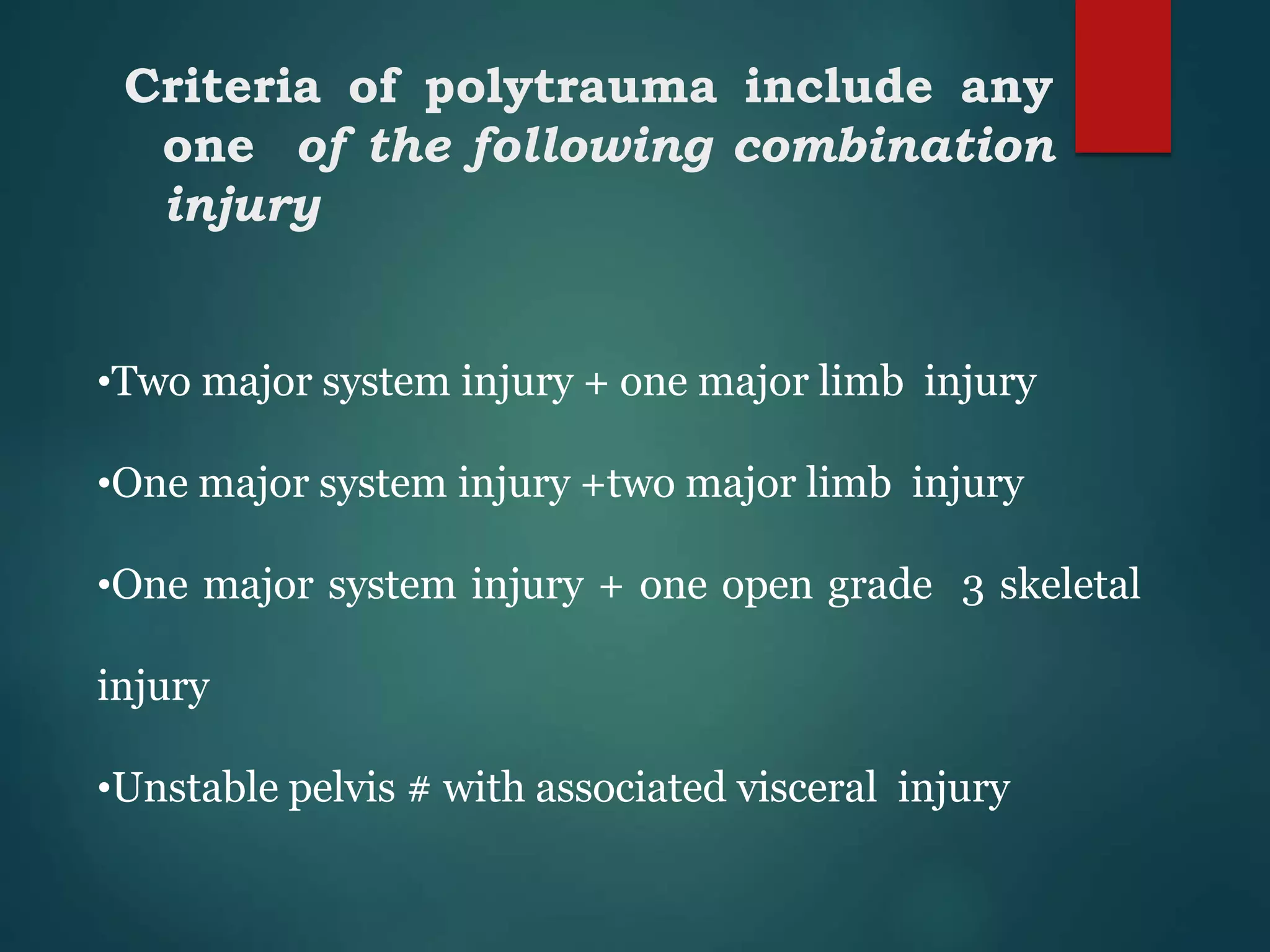 Polytrauma part 1 (overview) | PPT | Death, Injury, or Military ...