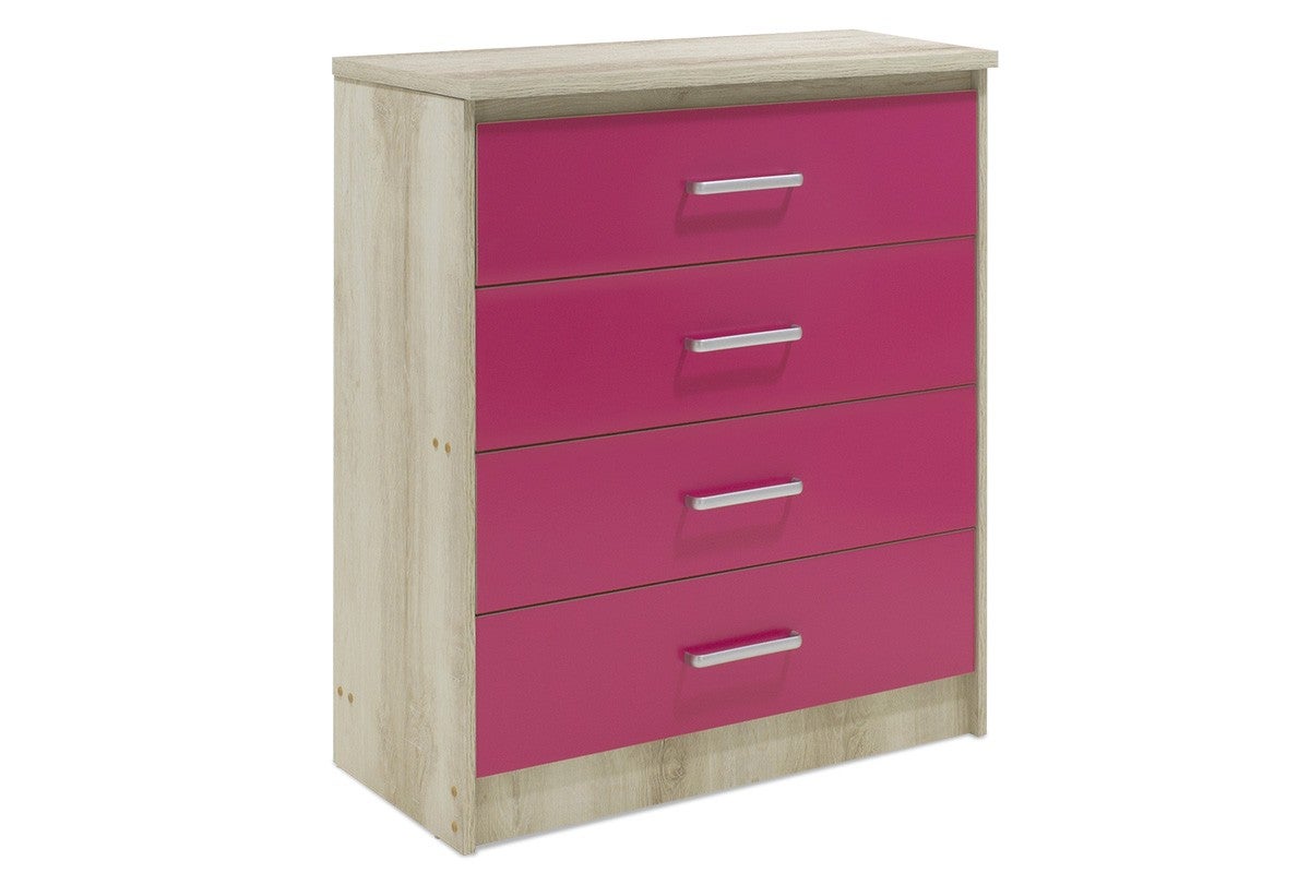 Commode 4 tiroirs, rose et cambria, 80x40x95 cm, meuble de rangement ...