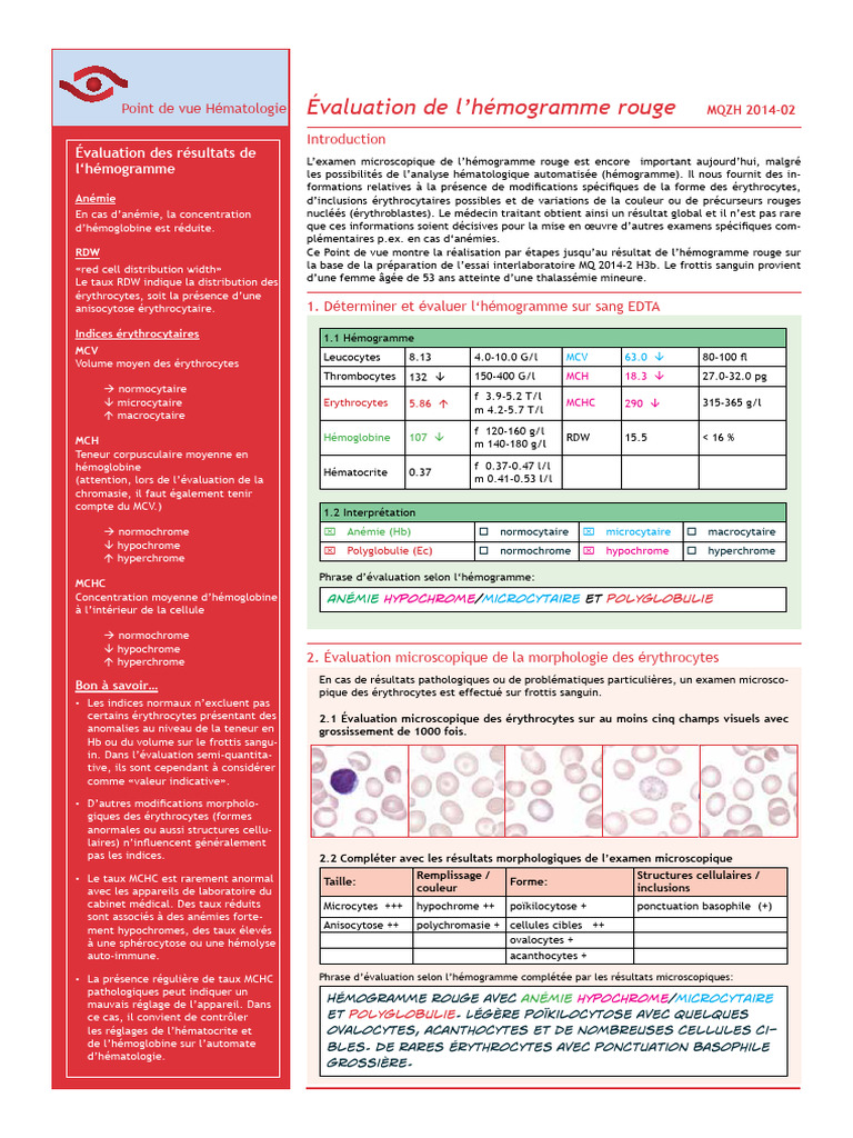 Évaluation de L'hémogramme Rouge | PDF | Globule rouge | Biologie