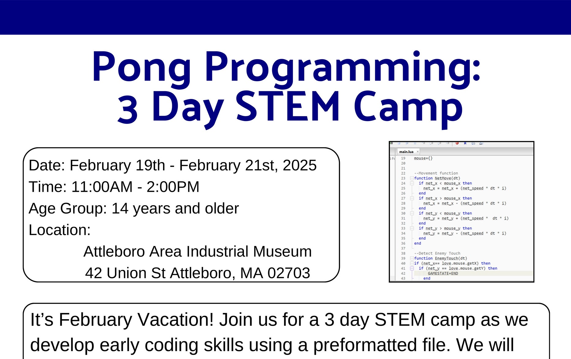 Pong Programming: 3 Day STEM Camp Tickets | Attleboro Area Industrial ...