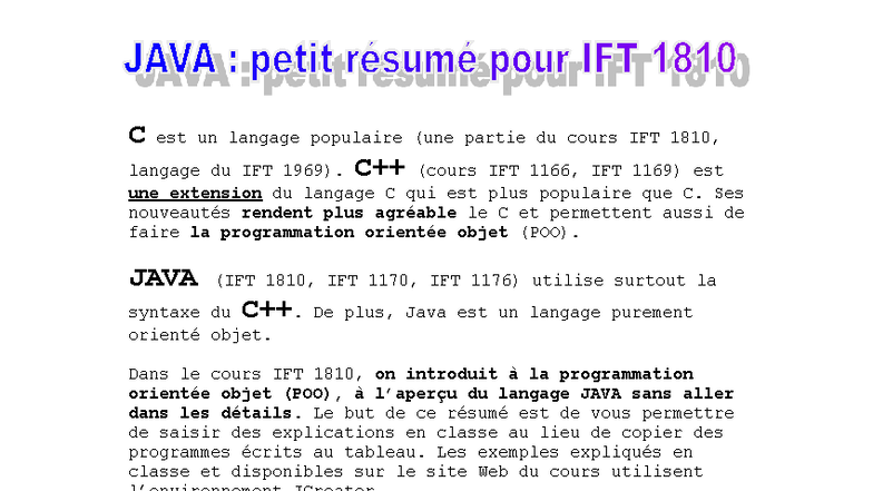 Java 01 - Introduction à la POO et aperçu du langage Java (IFT 1810 ...