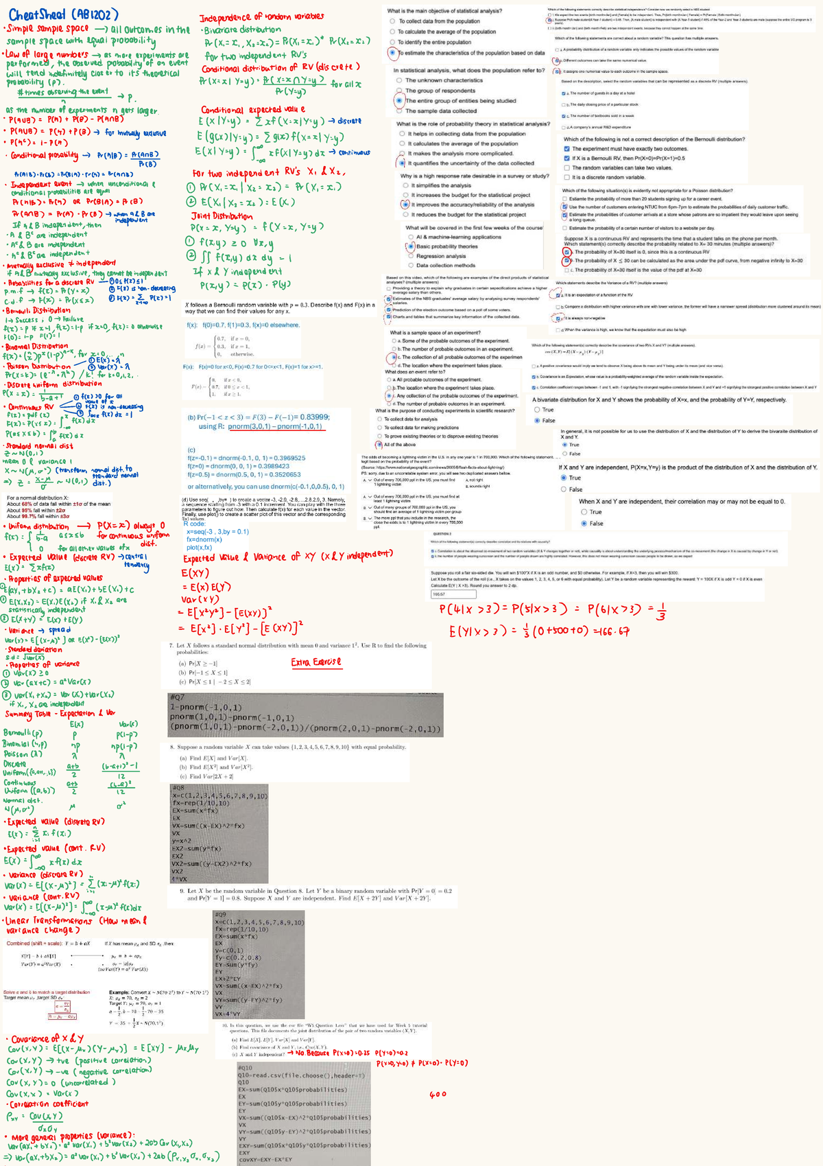 Cheatsheet (AB1202) Quiz 1: Statistical Analysis & Probability Concepts ...