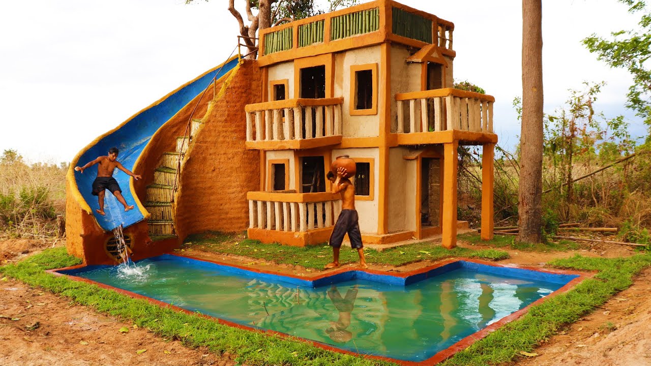 Unbelievable! Full video: Building Swimming Pool Water Slide Around The ...