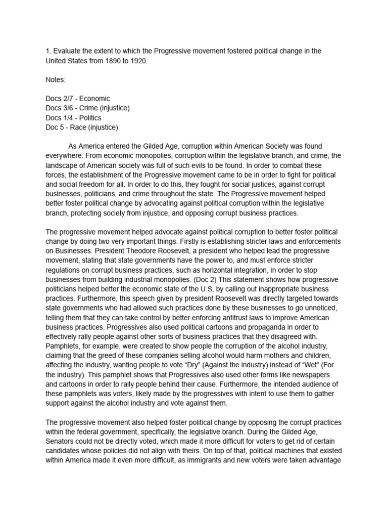 DBQ Practice For APUSH With Example | PDF | Progressivism In The United ...