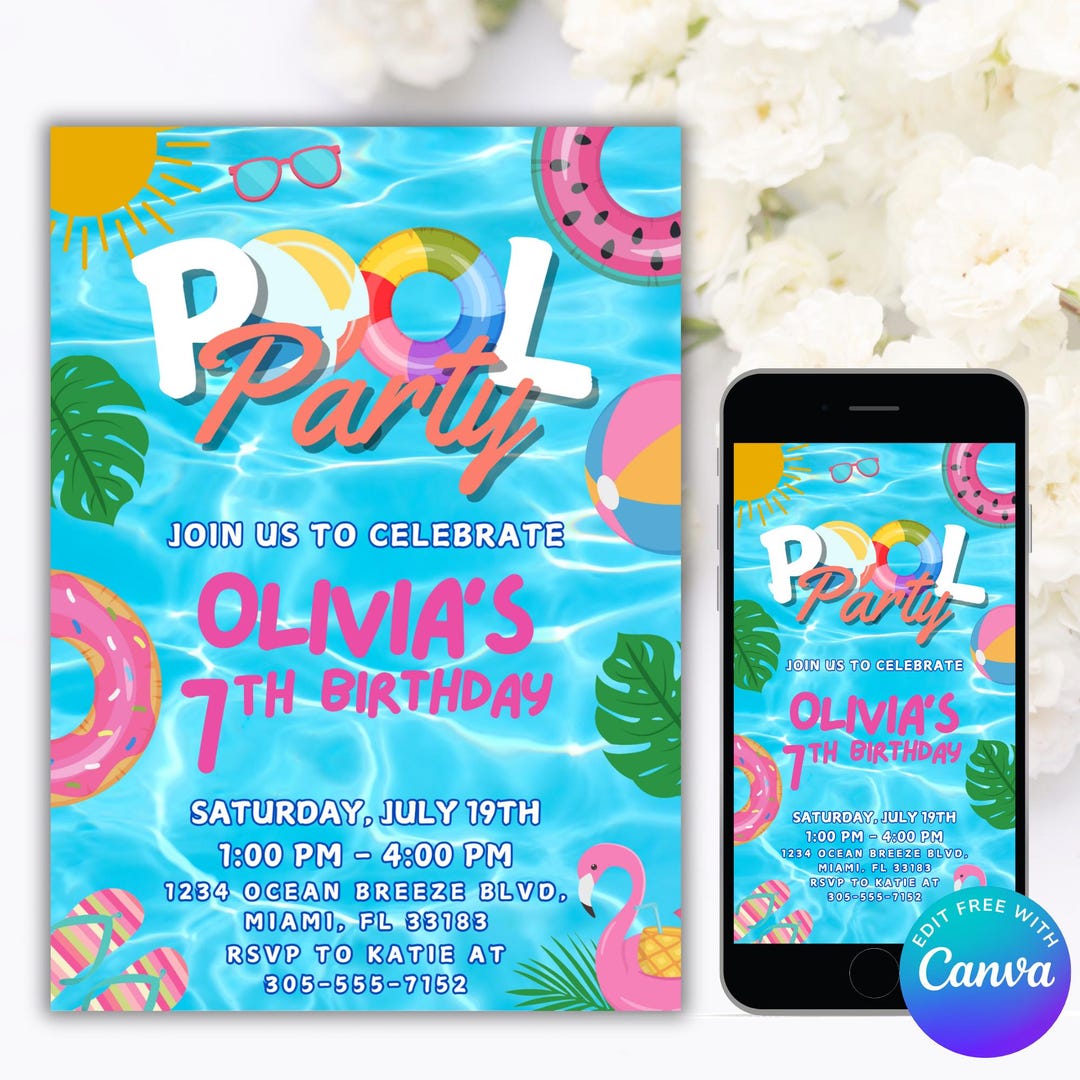 Pool Party Invitation, Pool Party, Digital Pool Party Invitation, Pool ...