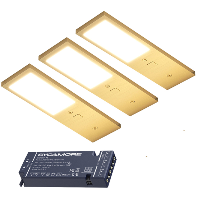 Sorrelis Elvan TriGlow Brushed Brass Rectangle 3 Cabinet Light Kit ...