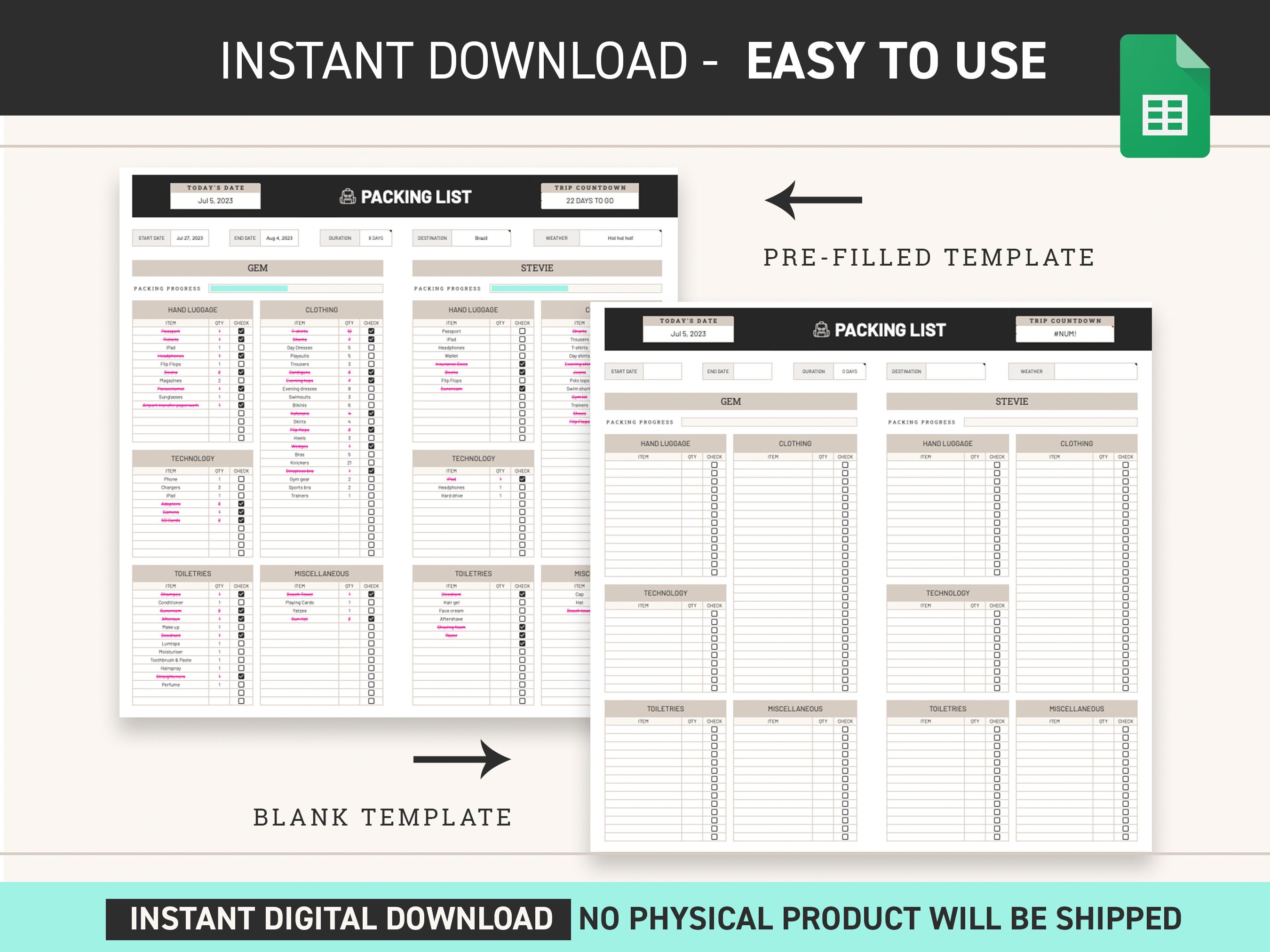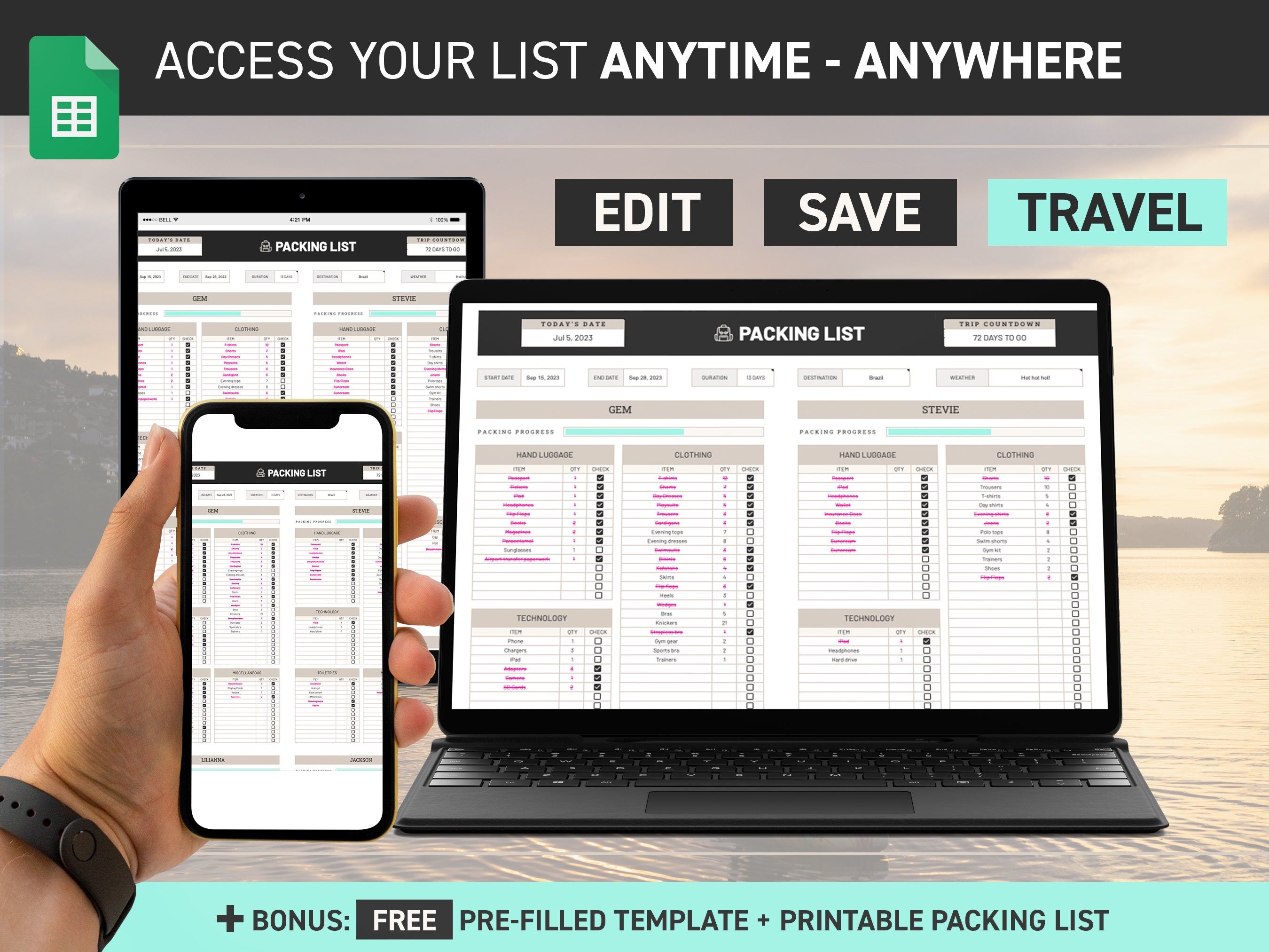Group Packing List, Google Sheets Packing List, Group Travel Organiser ...