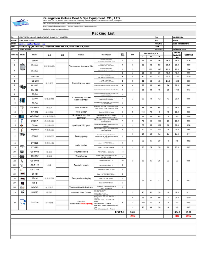 Packing List - Pool Equipment - by Mavis | PDF | Pipe (Fluid Conveyance ...
