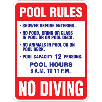 Pool Sign - "Pool Rules" #2 (12"x18") - DBD Sign Solutions