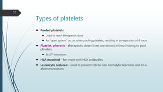 Platelet transfusion Flashcards | Quizlet