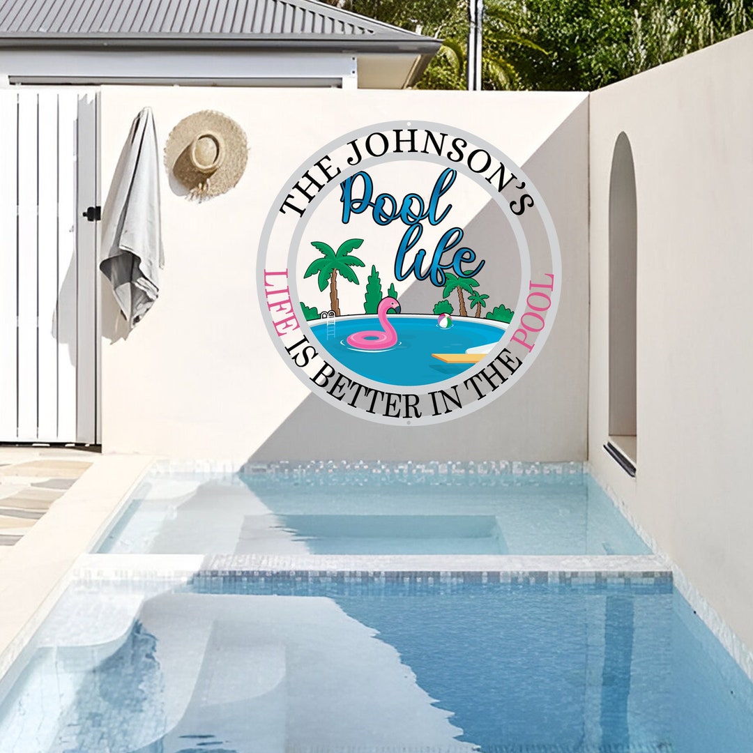Personalized Pool Life Sign - Custom Name Poolside Decor - Tropical ...