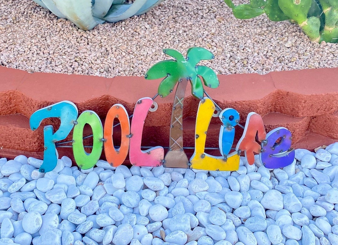 Metal Pool Life Multicolor Backyard Sign | Patio Yard Art Garden Decor ...