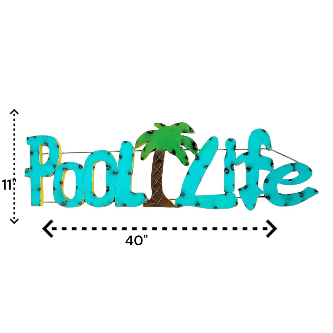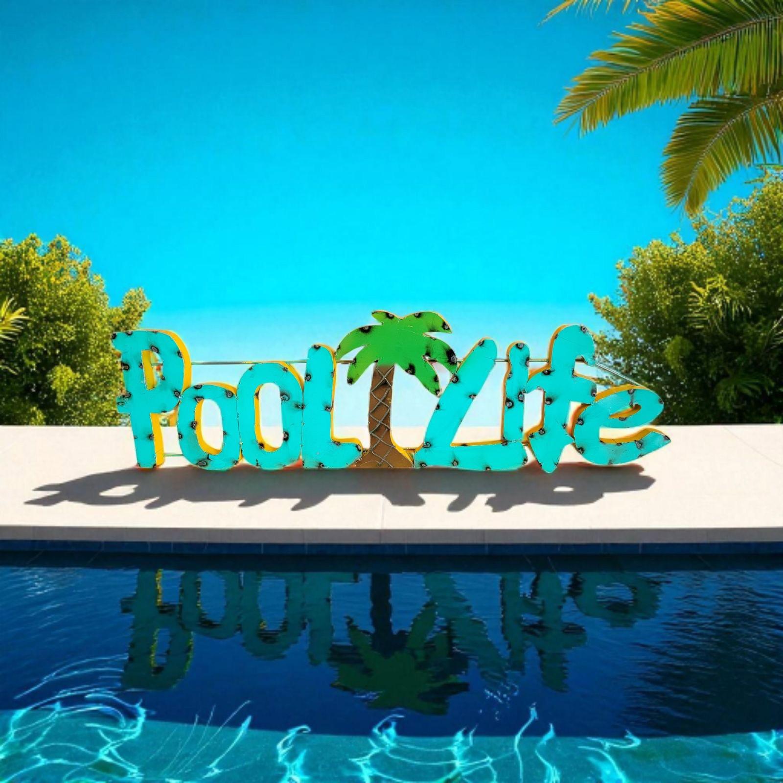 Pool Life Metal Sign-Palms-Handmade-Colorful Sign-40x12 inches