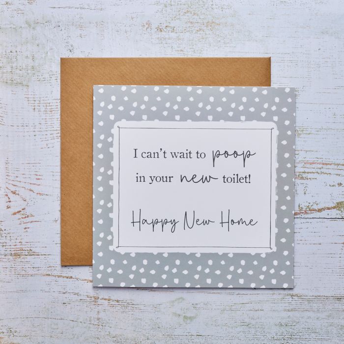 NEW HOME POOP CARD WITH GREY & WHITE SPOTTY BORDER RUDE