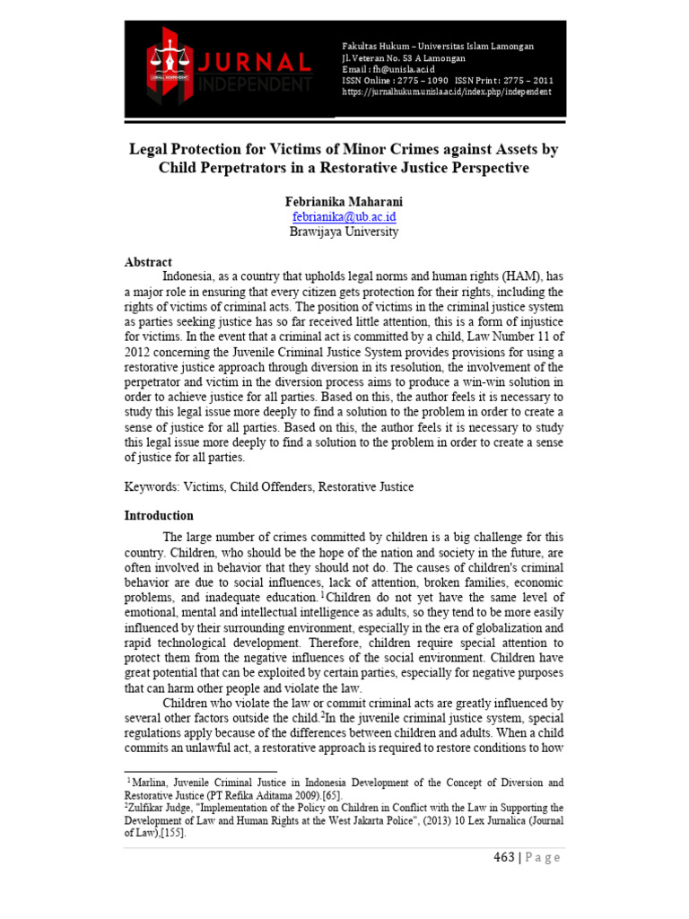 Legal Protection For Victims of Minor Crimes Against Assets by Child ...