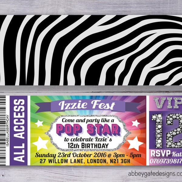 Pop Rock Star Invitation Ticket / DIY Printable PDF or Print - Etsy ...