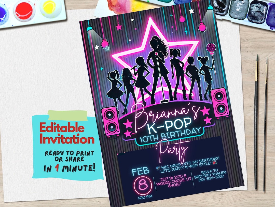 K-pop Star Birthday Invitation | Editable Digital Invite for Teens ...