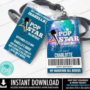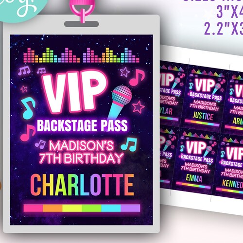Pop Star Birthday VIP Backstage Pass Printable Template for - Etsy
