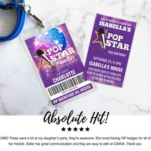 Pop Star Party VIP Badge Invitation,party Like a Pop Star,rock N Roll ...