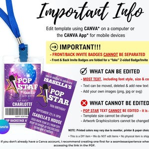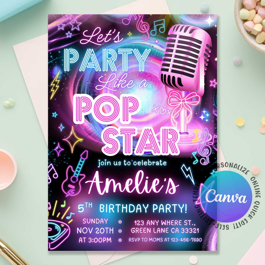 Editable Popstar Birthday Invitation – Canva Template – Party Like a ...