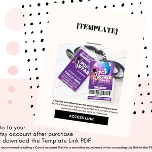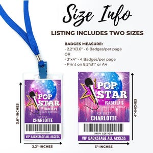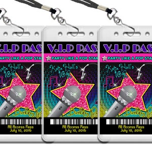 Pop Star Birthday VIP Backstage Pass Printable Template for Lanyards ...