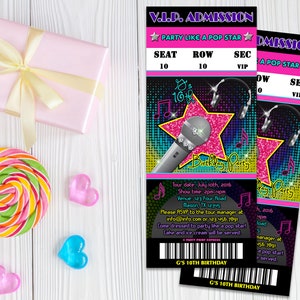 Girl Pop Star Birthday Invitations - Neon Pop Star Admission Ticket ...