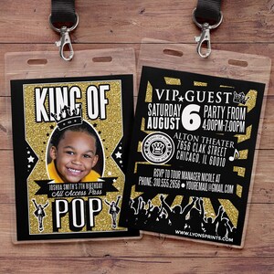 Pop Star Party VIP Badge Invitation, Party Like a Rock Star, Rock N ...