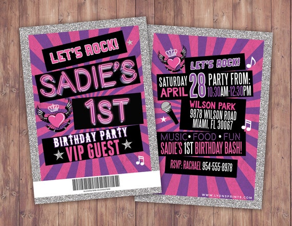 Pop Star Invitations Rock Star Birthday Invitations Music - Etsy