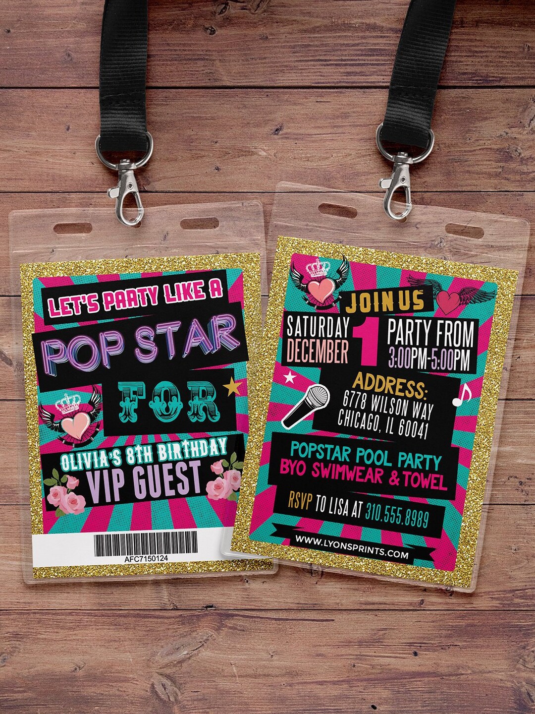 Pop Star VIP Pass Lanyard Invitations Rock Star Party Invites Karaoke ...