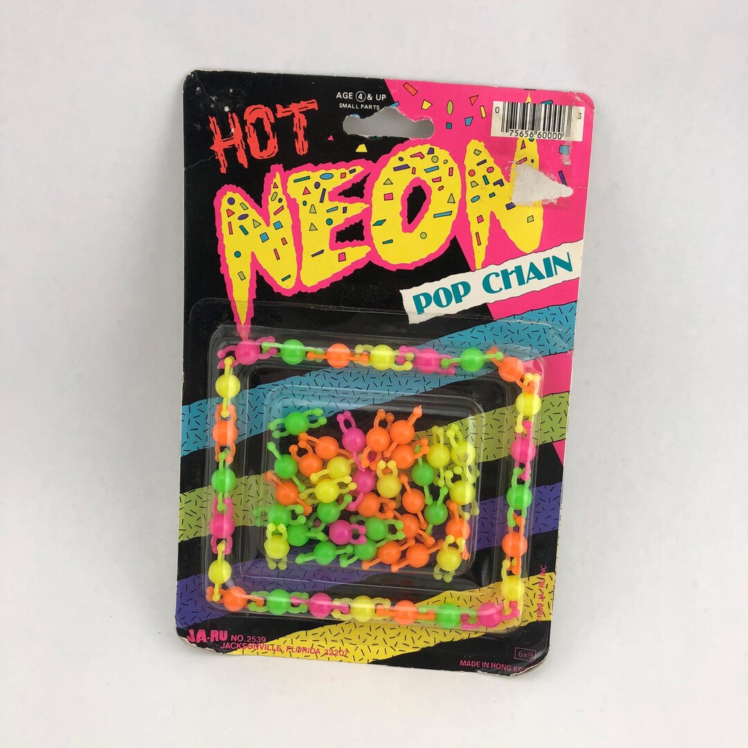 Vintage Hot Neon Pop Chain, JA-RU, Made in Hong Kong, Neon Pop Beads ...