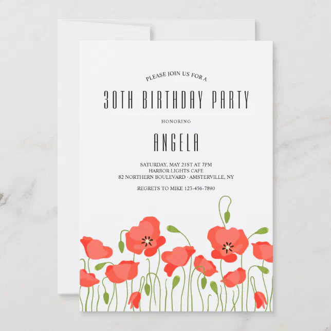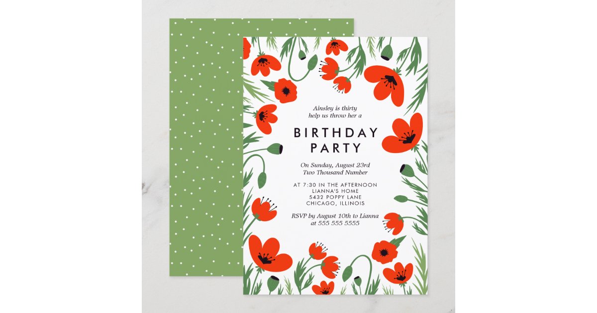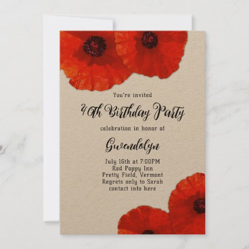 Poppies Floral Birthday Invitation Adult Poppy | Zazzle