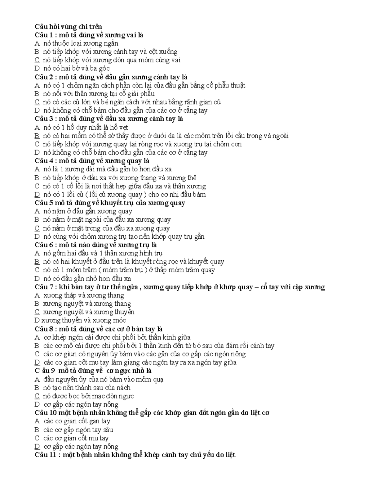 Chi trên - ppppppppppppppppppp - Câu hỏi vùng chi trên Câu 1 : mô tả ...