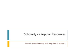 Scholarly vs. Popular Resources - Research & Resources: An Introduction ...